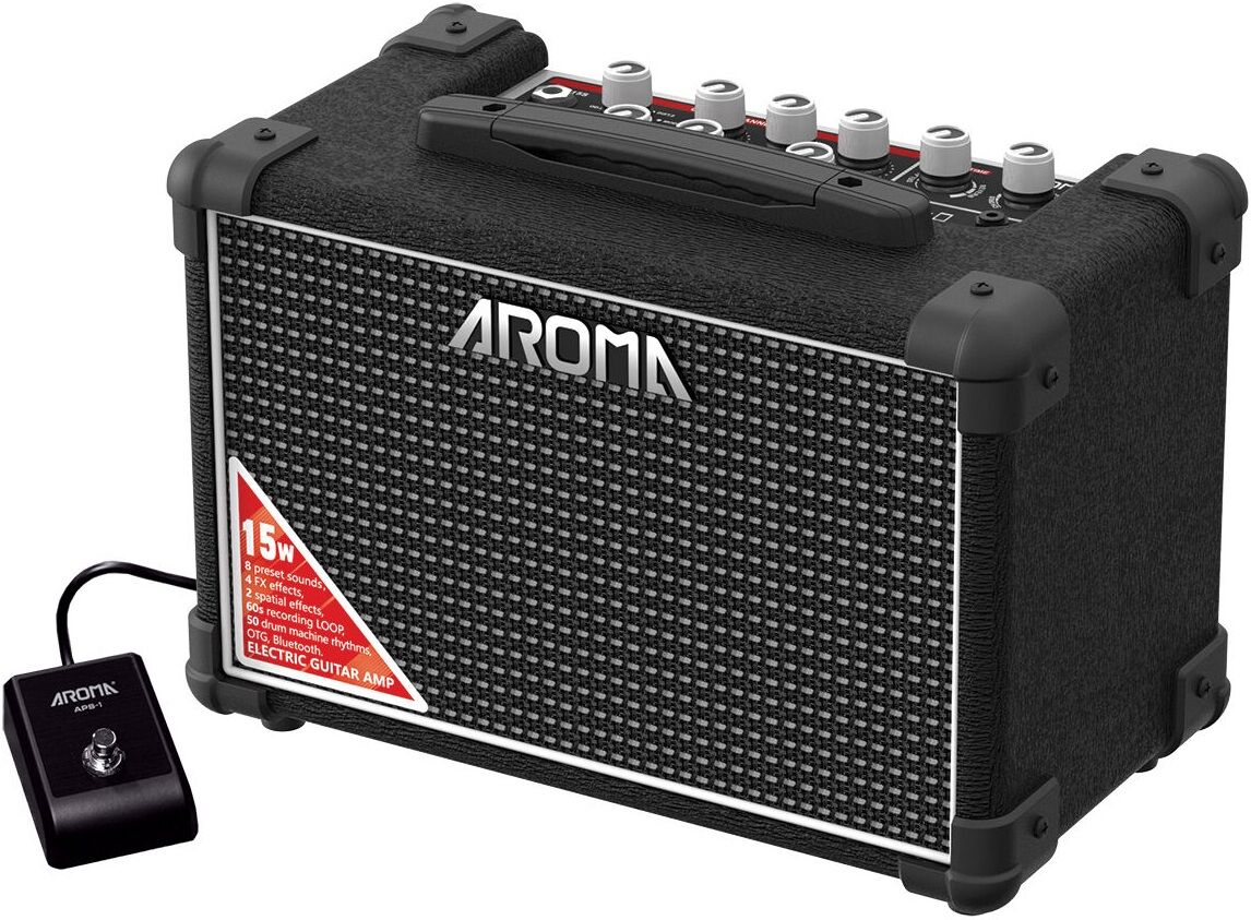 Aroma 15W Black Electric Guitar Amplifier with Footswitch and Drum Machine [TM-15S]
