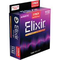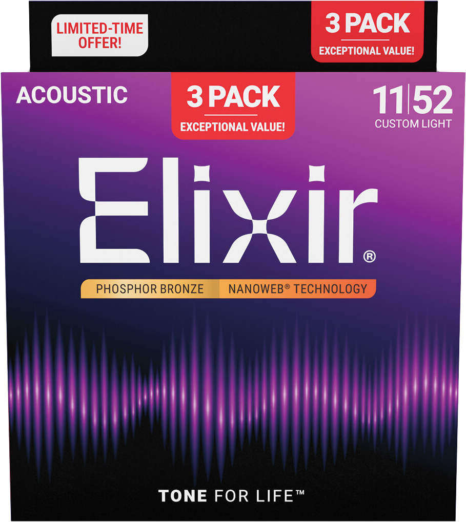 Elixir Nanoweb Acoustic Phosphor Bronze 11-52 Custom Light 3-Pack