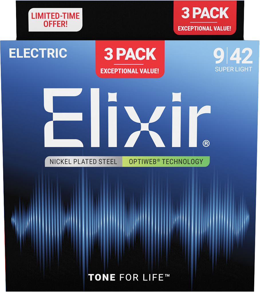 Elixir 3-Pack Optiweb Electric 9-42 Super Light