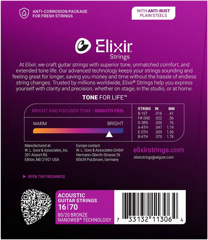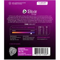 Elixir® Acoustic 80/20 Bronze Strings With NANOWEB Coating deliver a bRight, lively tone together With extended tone life that players have come to expect from ElixirStrings.