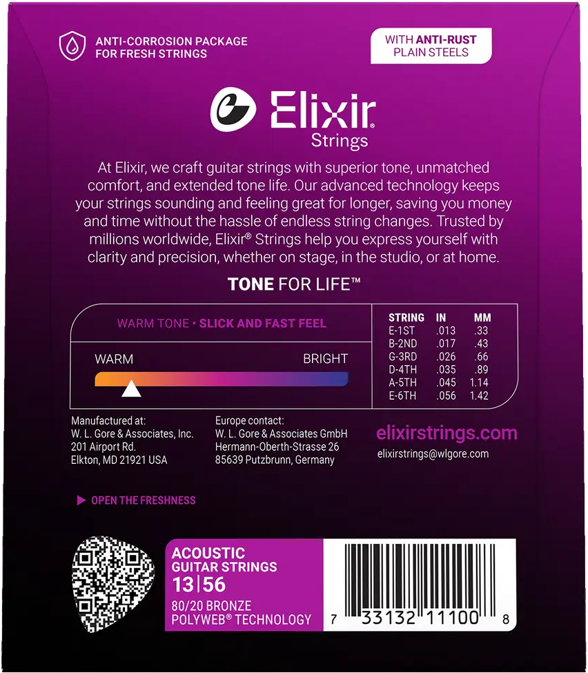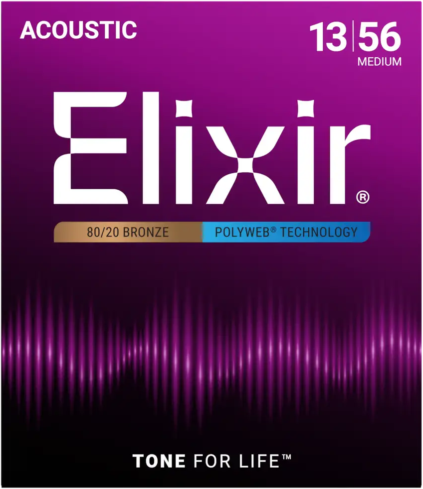 Elixir® Acoustic 80/20 Bronze Strings With POLYWEB Coating deliver a warm, "played-in" tone together With extended tone life that players have come to expect from ElixirStrings.