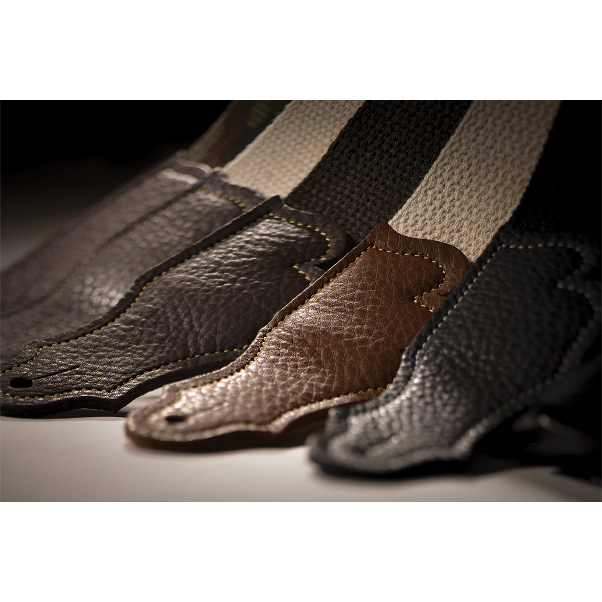 This series offers a remarkable value!  The 2″ soft, thick cotton is for shoulder comfort on long sets and are all crafted with our unique glove leather end tabs with contrasting stitching.  Our thick woven cotton is best for those wanting a decent grip on the shoulder, as opposed to the slippery fit our seat belt material offers.  Also available in with embossed suede ends!
