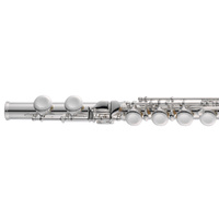 JFL700 standard series straight head flutes include the upgraded design of the Genesis headjoint and lip plate. This helps to facilitate early success and provide a more comfortable playing experience. The JFL710A open hole model flute features silver plated nickel silver throughout, and offset G, and top adjustment screws.