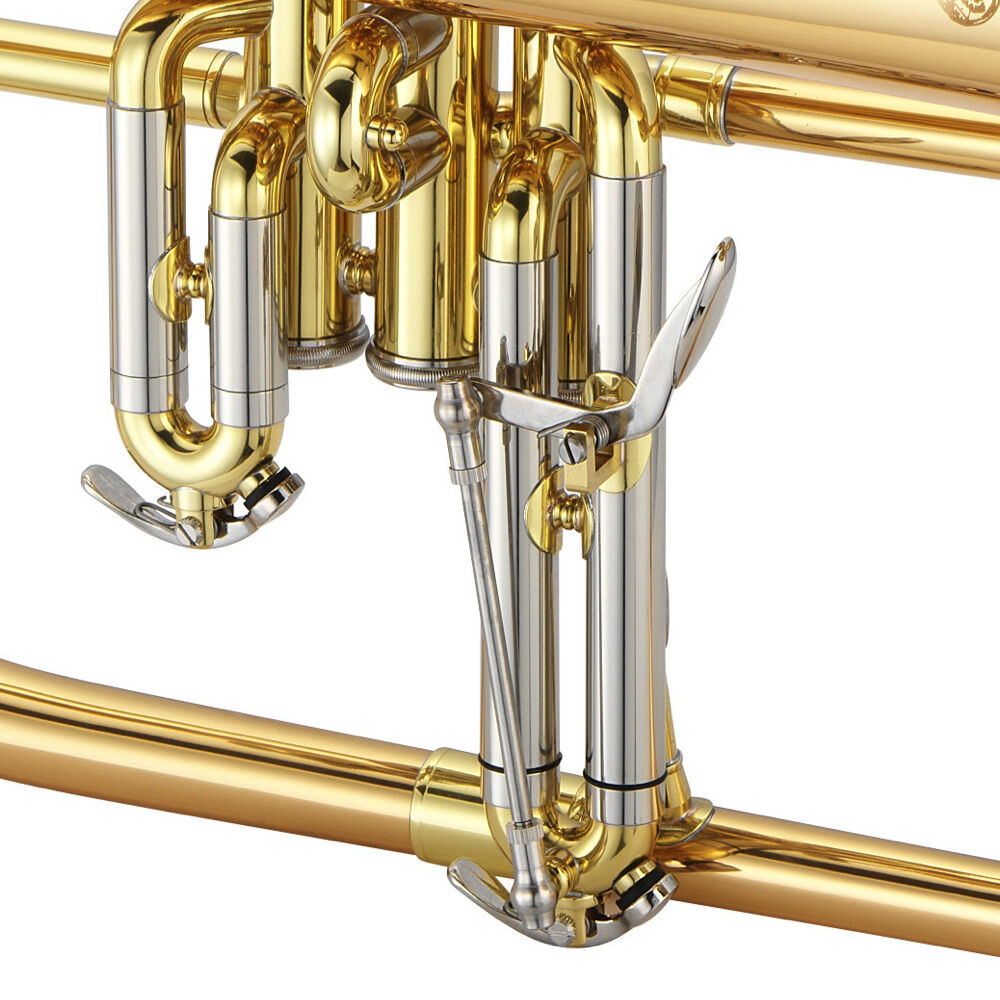 The JFH1100RQ features a professional design with a .413″ small bore design. Featuring the upgrade of the Rose Brass Bell (warmer tone) as well as the 3rd valve tuning slide trigger, the JFH1100R is one of the best intermediate flugelhorns available.