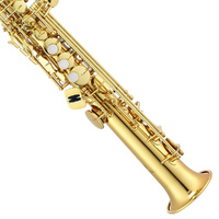 A great first soprano or for the doubler, the JSS1000 has all of the features you will need. Key of Bb. It features a gold lacquered one-piece body and keys, high F# key, and tilting G#-Bb spatula keys. Includes neck strap, mouthpiece, cork grease, and silk weave cleaning cloth.
