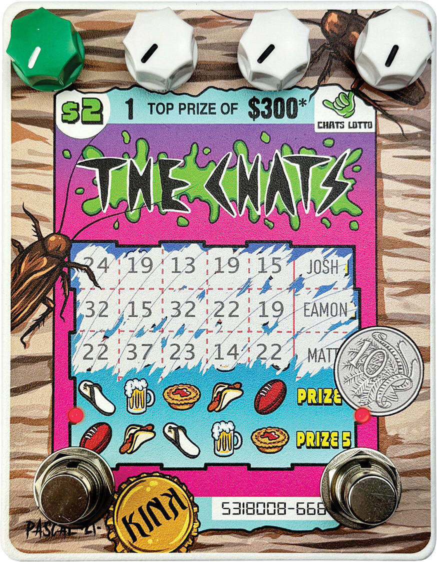 The Scratchie Fuzz is the result of a collaboration between Kink Guitar Pedals and The Chats. A Green Russian Big Muff style fuzz paired with a Boost. Fuzz and Boost can be used independently.