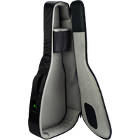 Tough 1680D Material, 25mm Pearl/ Pearl Cotton Foam for Maximum Strength, Protection, Moisture resistant, and Environmentally Friendly. Neck Support, Soft Premium Internal Lining, Heavy Duty Zippers, Easy Access Front Pocket, and Backstraps included. Internal Measurements: Length 108cm, Width(lower bout) 41cm, Height 13cm.
