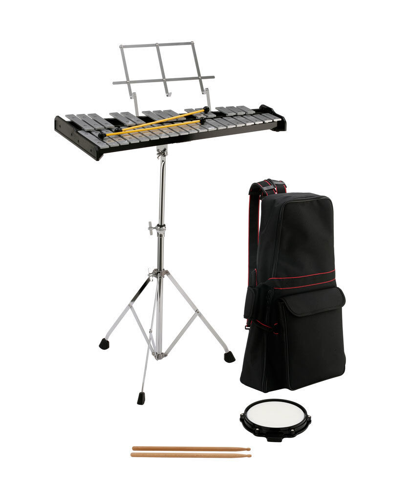 • Opus Percussion Bell Kit with 32-Note Glockenspiel, Stand, Mallets, Sticks, Practice Pad & Carrybag