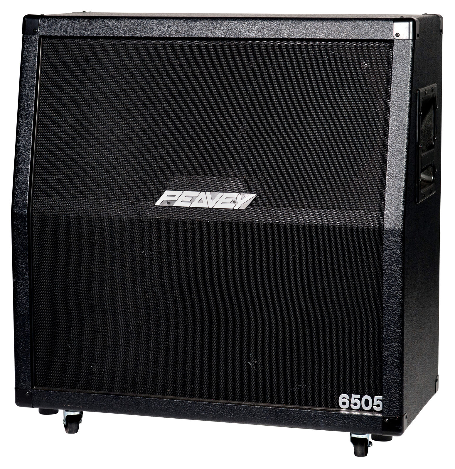 The Peavey 6505 Reissue 412 Slant guitar cabinet has been designed to the exacting specifications of our original 1992 version with a few basic updates that have been requested by countless artists over the years. Each cabinet features four 12" Sheffield 1230+ specially-voiced speakers loaded in a biplanar-aligned, infinite baffle, 300W closed-back cabinet. Dual 1/4" jacks with Stereo/Mono selector, solid Birch plywood construction, recessed handles, and heavy-duty pop-out casters complete the package.