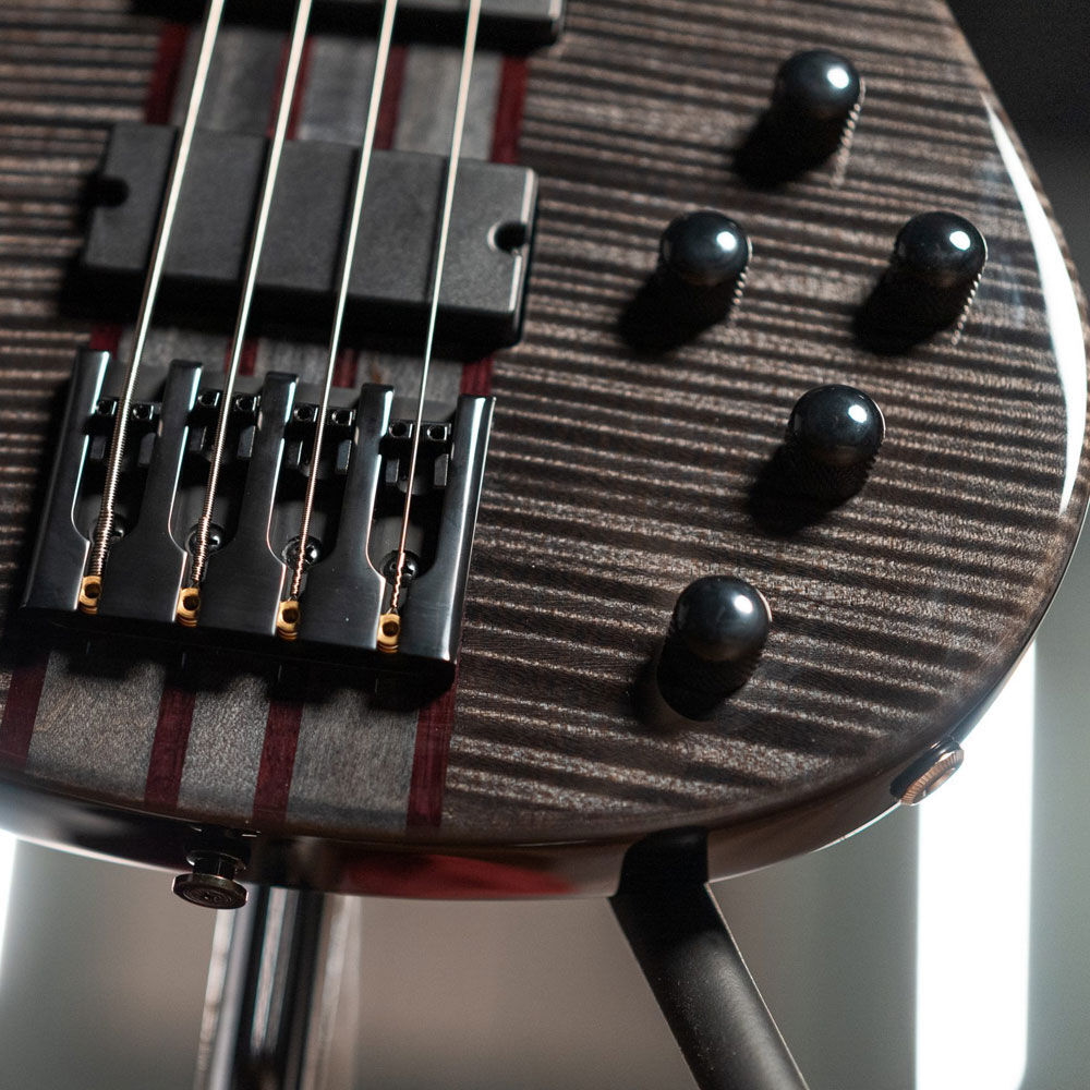 There are two models available: the Cirrus 4-string and 5-string. Each model offers Flame Maple, Flame Maple Trans Black, Flame Maple Trans Blue, or Wenge wood for the top material. The Cirrus 4 offers the additional option of a Quilt Maple top. The maple tops are paired with alder bodies, achieving a harmonious balance of brightness and midrange warmth. Similarly, the pairing of the wenge top with walnut creates a distinctive tonal fusion resulting in a rich, balanced sound. A natural oil finish is used, with the exception of the Flame Maple Transparent Blue and Transparent Black models, which have a corresponding Gloss Burst finish for a dazzling splash of color.