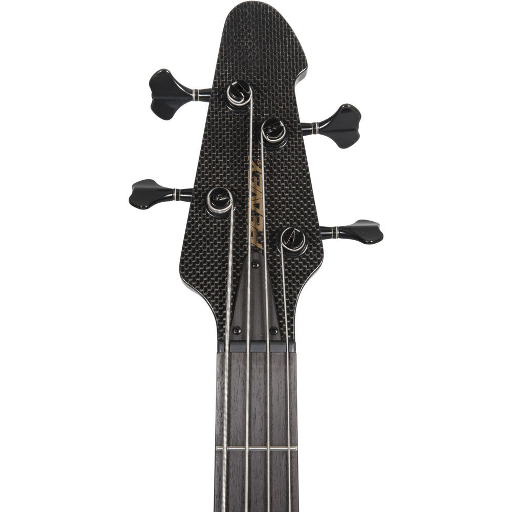 On each model, a rosewood fretboard with 24 medium jumbo frets is reinforced by purple heart wood stringers, which not only add to the tonal depth but provide an eye-catching design that complements each instrument’s overall look. Another captivating signature feature is the Cirrus inlay on the 12th fret. The engineering team also tips their hat to the lightweight 1997 design by using graphite pultrusion, as well as a graphite top nut and graphite overlay headstock with Peavey’s block letter logo.