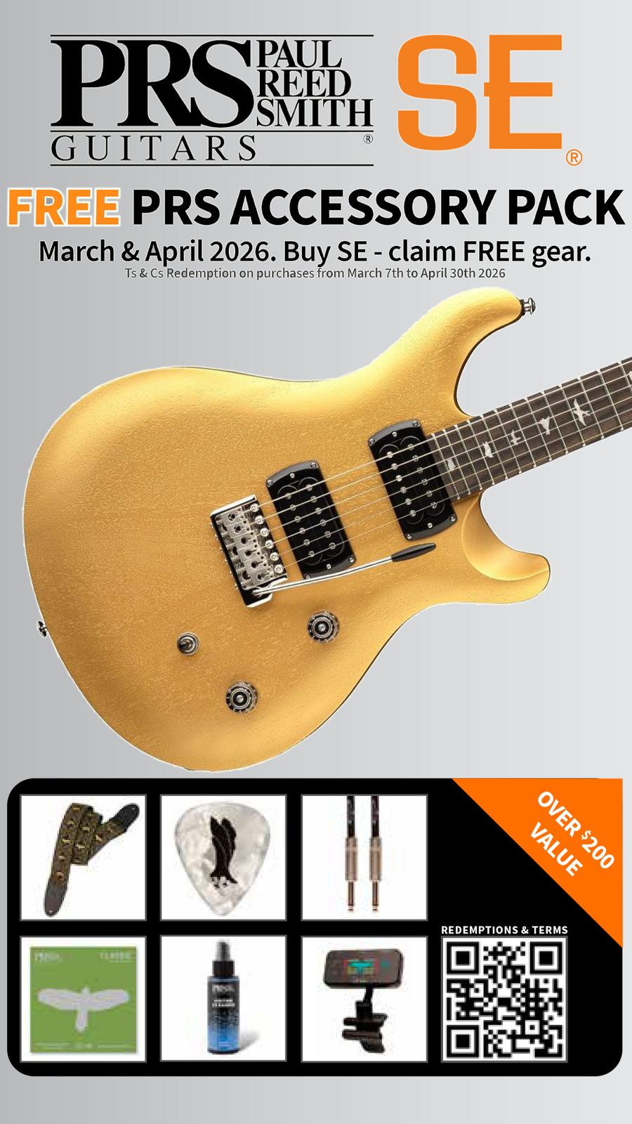 Buy any PRS SE Series Electric Guitar during March & April 2026 and receive over $200 worth of PRS accessories FREE! Simply submit your receipt through this link and your Accessory Pack will be sent straight to your door.
