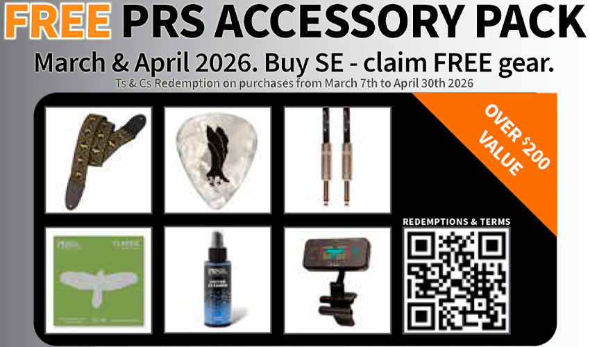 Buy any PRS SE Series Electric Guitar during March & April 2026 and receive over $200 worth of PRS accessories FREE! Simply submit your receipt through this link and your Accessory Pack will be sent straight to your door.