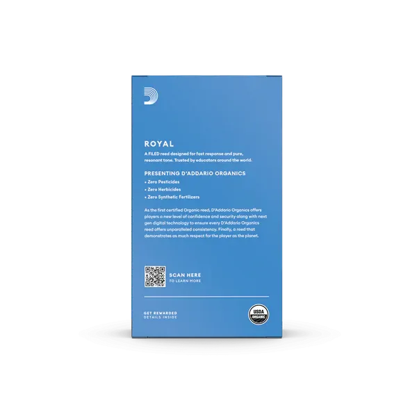 Royal Organic reeds are beloved by educators worldwide and ideal for both beginning and advancing players. These reeds feature a filed cut for additional tonal clarity, and a traditional blank and profile to give you an ease of response when playing. Each reed in the pack comes individually-sealed in a recyclable paper reed holder and flow wrap.