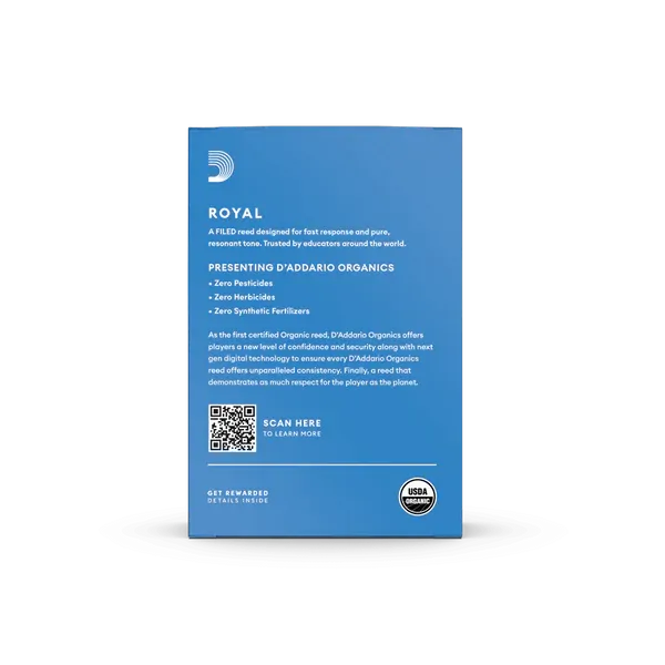 Royal Organic reeds are beloved by educators worldwide and ideal for both beginning and advancing players. These reeds feature a filed cut for additional tonal clarity, and a traditional blank and profile to give you an ease of response when playing. Each reed in the pack comes individually-sealed in a recyclable paper reed holder and flow wrap.