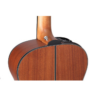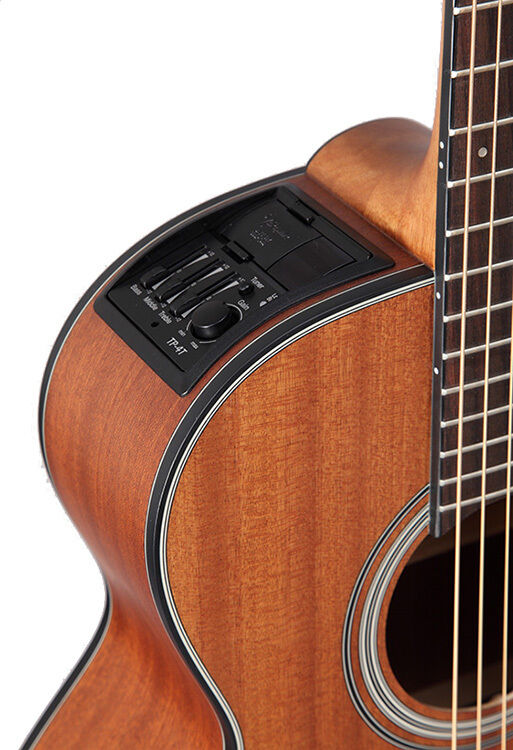 This all mahogany, non-cutaway 3/4 size Taka-mini may be the best excuse ever to own a smaller scale guitar. Tuned standard, alternate or high strung to heaven, the GX11ME-NS is a very unique and versatile instrument all unto itself. The laurel 21 fret fingerboard and friendly 42mm nut width have the feel of an old friend. Take it to the beach. Take it to the studio - and with the TP4T preamp you can take it on stage.