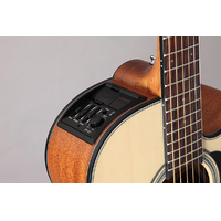 This original Takamine body is a scaled-down Jumbo at heart. The NEX has a silky balance to the tone that supports vocals beautifully.