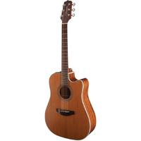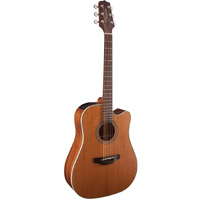 For players looking for a different sound, the GD20CENS combines a solid cedar top with mahogany back and sides to produce a warm, detailed tone that works beautifully for a wide range of musical styles. The slim satin-finish mahogany neck and 12" radius ovangkol fingerboard provide great feel and playability, while the onboard Takamine TP-4TD preamp system gives you a built-in tuner with three band EQ and gain controls for excellent amplified performance and versatility.