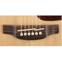 Other great features include maple body, neck and headstock binding, synthetic bone nut and split bridge saddle, laurel headcap, abalone rosette, abalone dot inlays, gold diecast tuners with amber buttons and a beautiful gloss finish. Available in Natural and Sunburst.