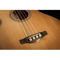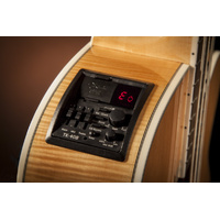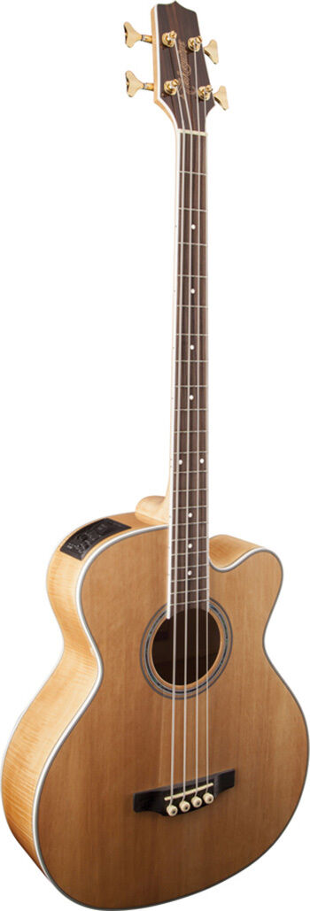 Featuring a solid spruce top and flame maple back and sides, the GB72CE produces all the volume and robust sound that players expect from a jumbo bass guitar. The slim mahogany neck and 16”-radius bound laurel fingerboard provide great feel and playability, while the onboard Takamine TK-40B preamp system gives you a built-in tuner, three-band EQ and gain controls, mid-shift control, bass-boost switch and EQ bypass switch for the ultimate in versatility and sound quality.