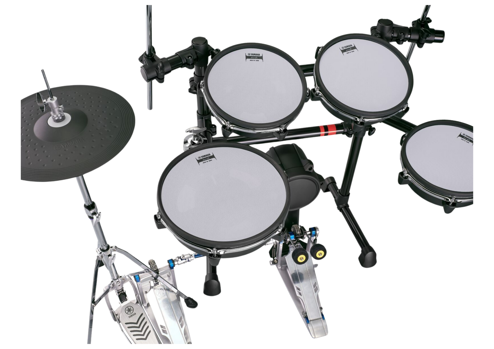 Yamaha, also a manufacturer of acoustic drums, focuses on a playing feel similar to that of acoustic drums. The snare drum and ride cymbal are the most frequently played pads. The 12" large-diameter newly developed 3-Piezo mesh snare pad and 15" ride cymbal pad feature as standard. The snare pad and tom pads use the same hoops as acoustic drums for realistic playing feel.