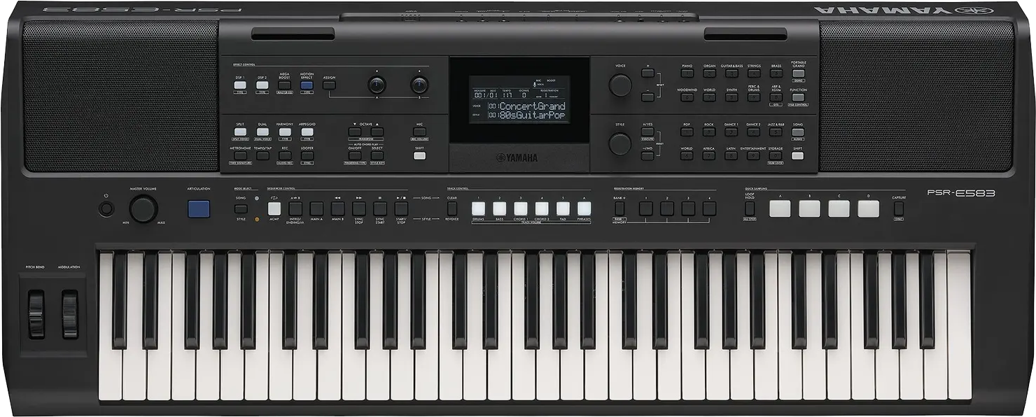 Yamaha PSR-E583 61-Key Portable Performance Keyboard with 890 Voices, 345 Styles, Super Articulation Lite, DSP Effects, Mic Input, USB-C & Live Control Knobs